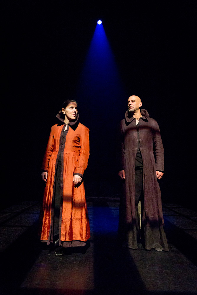 La mise en scène est très épurée : aucun élément de décor n’est utilisé et les trois comédiens – qui se partagent l’intégralité des rôles – changent de personnage en enfilant un accessoire ou en retournant leur cape. Ces effets donnent à la pièce un côté assez moderne que j’ai beaucoup apprécié, tout en conservant un texte plutôt classique.