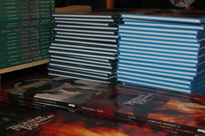 Je suis ensuite retournée faire un tour à la librairie où il y avait vraiment beaucoup de monde. Certains ouvrages sont d’ailleurs partis très vite et je déplore le fait qu’il y ait moins de choix en littérature jeunesse (romans, albums, BD) que les autres années. Ce sont surtout les cinq romans en compétition qui ont été mis en avant et qui étaient donc présents en très grand nombre.