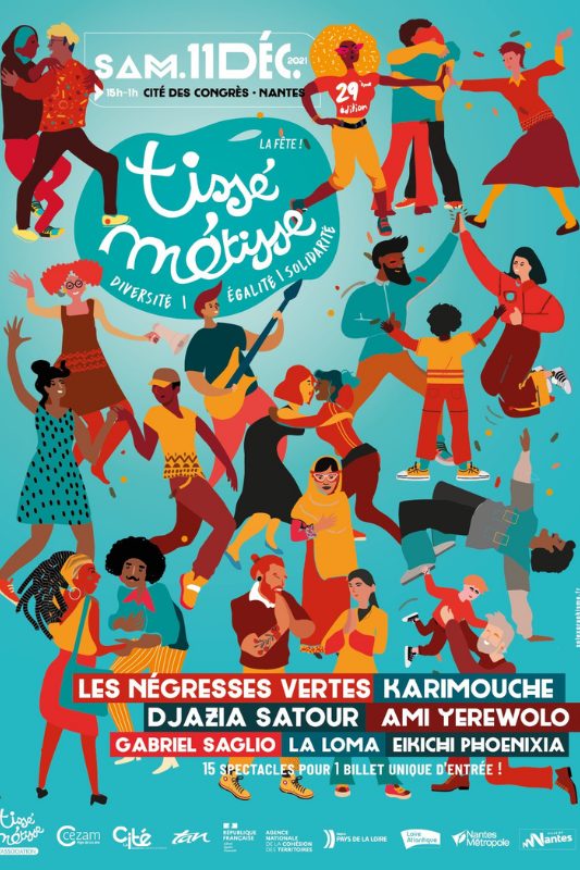 La vingt-neuvième édition de Tissé Métisse La fête aura lieu le samedi 11 décembre 2021 de 15h à 1h à la Cité des Congrès de Nantes. Suite aux restrictions sanitaires récentes et aux différents confinements, l’équipe permanente du festival a souhaité réafirmer les valeurs originelles de la manifestation, à savoir la diversité, l’égalité et la solidarité.