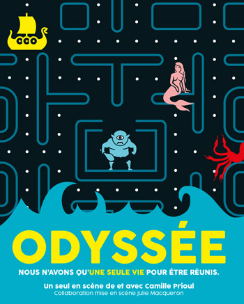 Odyssée est un seul en scène écrit et interprété par Camille Prioul. Comme dans l’oeuvre éponyme d’Homère, celui-ci retrace l’épopée d’Ulysse mais d’une manière plutôt originale. En effet, ce voyage nous est conté par tout un panel de différents personnages – une trentaine au total – ce qui nous donne autant de points de vue sur les aventures du Héros.