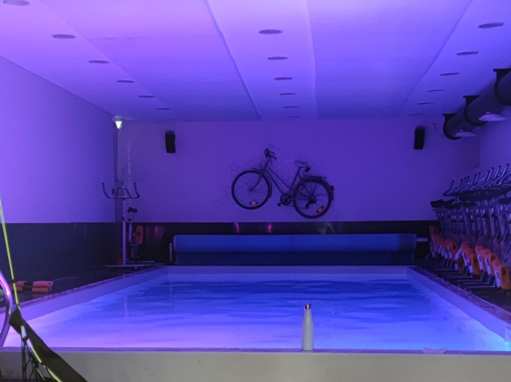 Le deuxième, c’est l’aquabike. Je pensais que ce cours serait très axé cardio et jambes mais c’est en fait une séance bien plus complète à laquelle j’ai participée. On a à la fois fait du cardio et du renforcement musculaire, avec un bon rythme, de chouettes musiques entraînantes et différents exercices permettant de se dépasser. C’est celui que j’ai préféré !