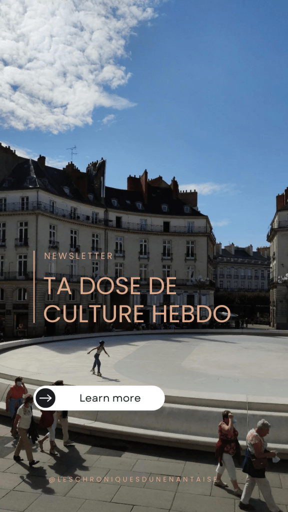 Si tu veux t’abonner, rien de plus simple ! Il te suffit de cliquer sur ce lien, de me donner ton prénom et ton mail et tu recevras chaque samedi à 11h ta dose de culture hebdo. C’est tout ! Alors, tu t’abonnes ?