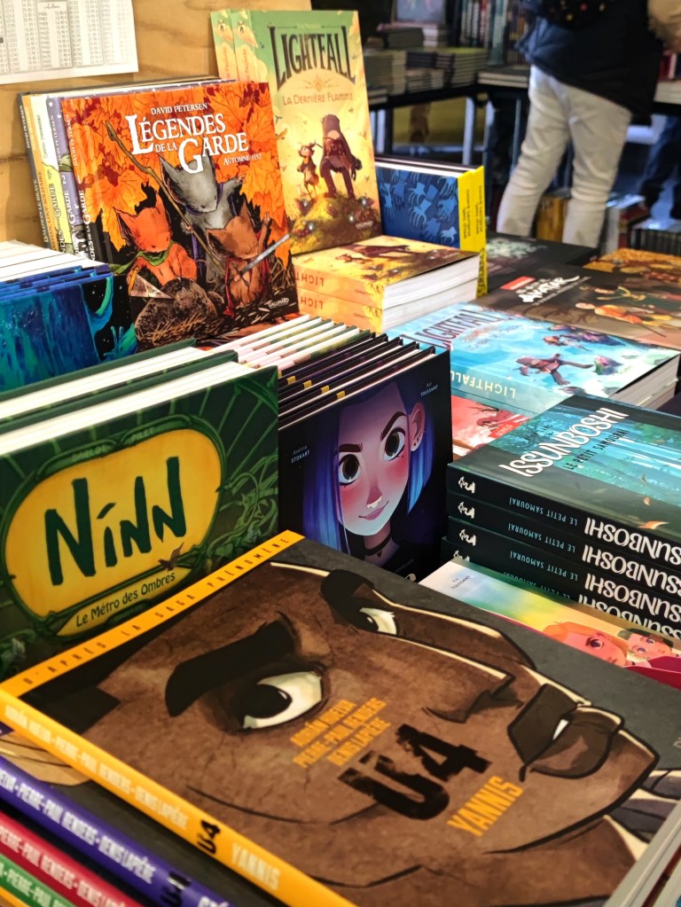 A 16h30 ouvrait la plus grande librairie de science-fiction du monde – que dis-je de la galaxie – qui s’ouvre chaque année pour quelques jours au festival des Utopiales à la cité des congrès de Nantes. J’ai donc été y faire un tour et comme chaque année, la sélection est bien bien chouette et donne envie de découvrir tout un tas de livres – et d’en acheter tout autant ! Les librairies complices de Nantes (Durance, Aladin, Les enfants terribles, La mystérieuse librairie et l’Atalante) nous invitent à voyager grâce à la lecture dans cette librairie éphémère dédiée à la science-fiction. Mention spéciale pour la sélection de romans ados qui est bien fournie cette année et moins cachée que d’habitude, un plaisir pour moi !